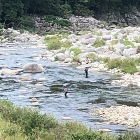 広瀬親売り場前の様子です。 渇水、クリア、水温23℃ 鮎の付き場が日によ...