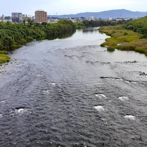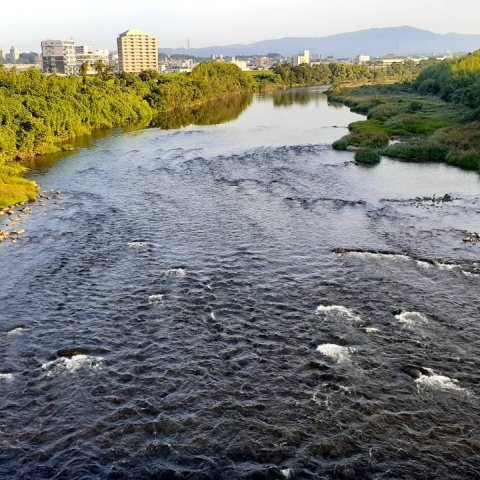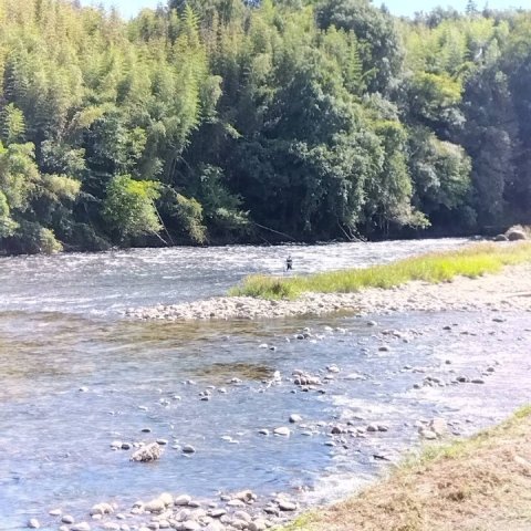 小渡ヤナ上流の様子 40度に迫る猛暑も治まり 快適な釣り日和となって...