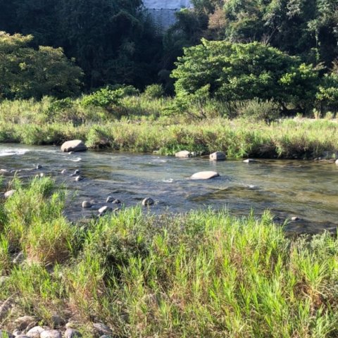 明智川共同漁場の様子 水位10cm高 濁りなし 白川状態です かわかど橋 左...